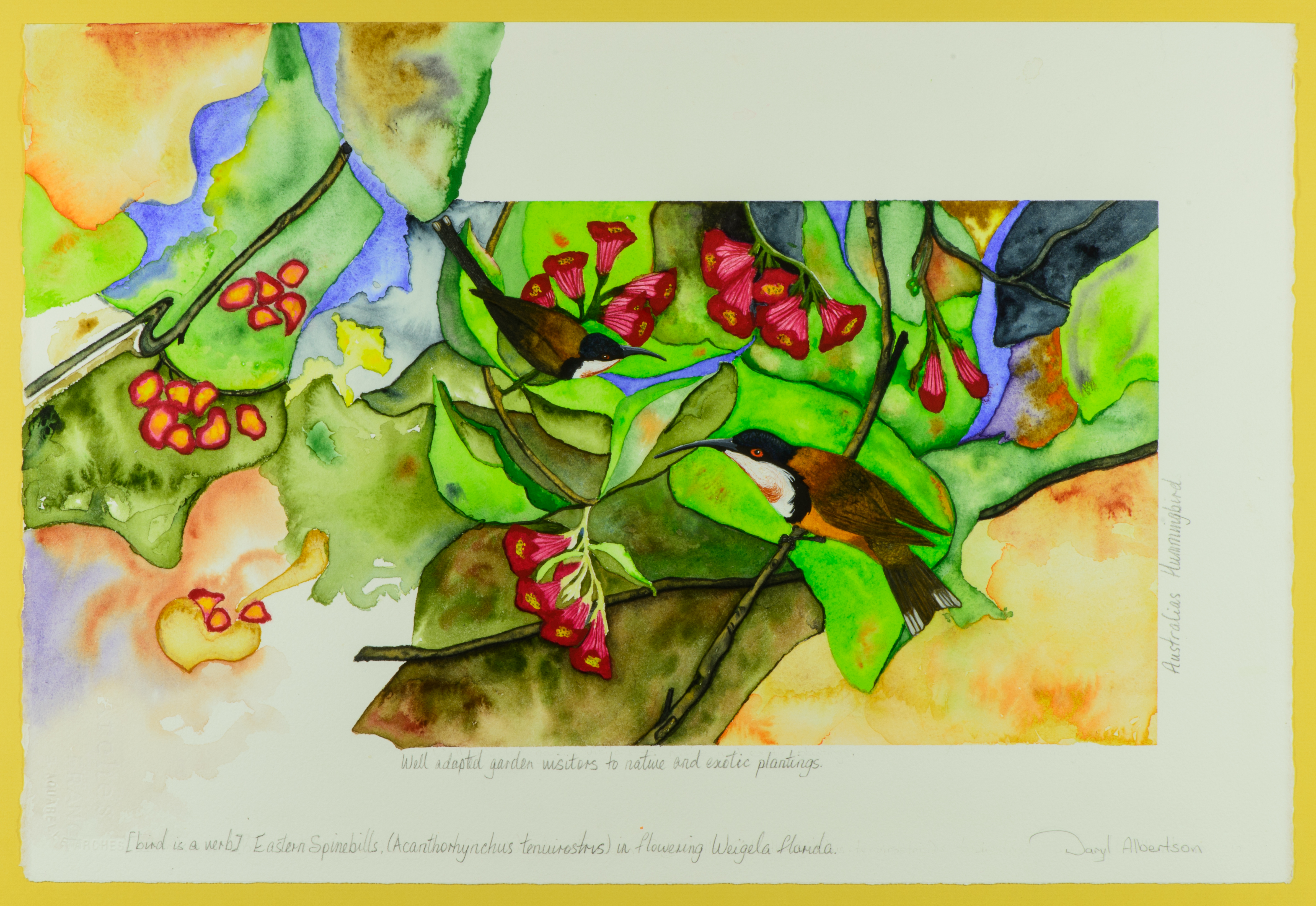 [bird is a Verb] Watching Eastern Spinebill (Acanthorhynchus tenuirostris) feeding on Weigela (fam.Caprifoliaceae) I think they must be Australia's cousin to Hummingbirds of northern hemisphere.