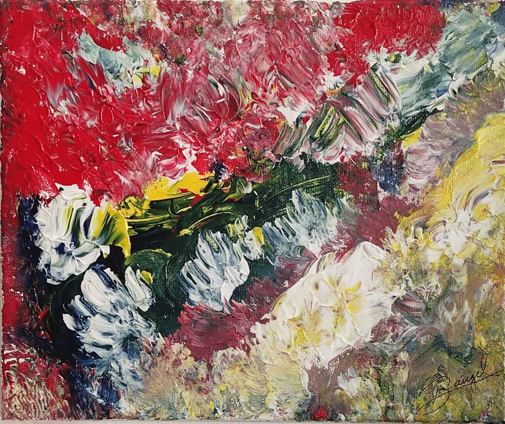 "Feelings" is a pure manifestation of emotion in color and movement. The artist translates her inner world through intense gestures and vibrant contrasts between red, white, and green. The dense, free brushstrokes become the language of the heart, capturing the spontaneity of human feeling. A composition that reflects passion, creative impulse, and the power of emotional expression in contemporary art.