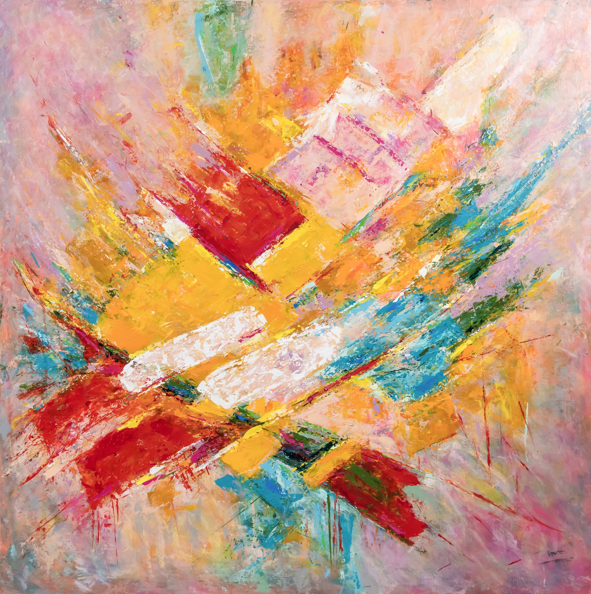 The inspiration for "Blossom 12" comes from world-famous artists such as Chu Teh-Chun and Andy Warhol. This work is characterized by rich colors and rough lines. The use of abstract techniques creates a serene and expansive visual experience. The palette knife dances freely and casually on the canvas, showing the delicacy and tranquility of the colors, while the blue adds a touch of vibrancy and bounce. The colors on the canvas fluctuate like musical notes, with highs and lows.