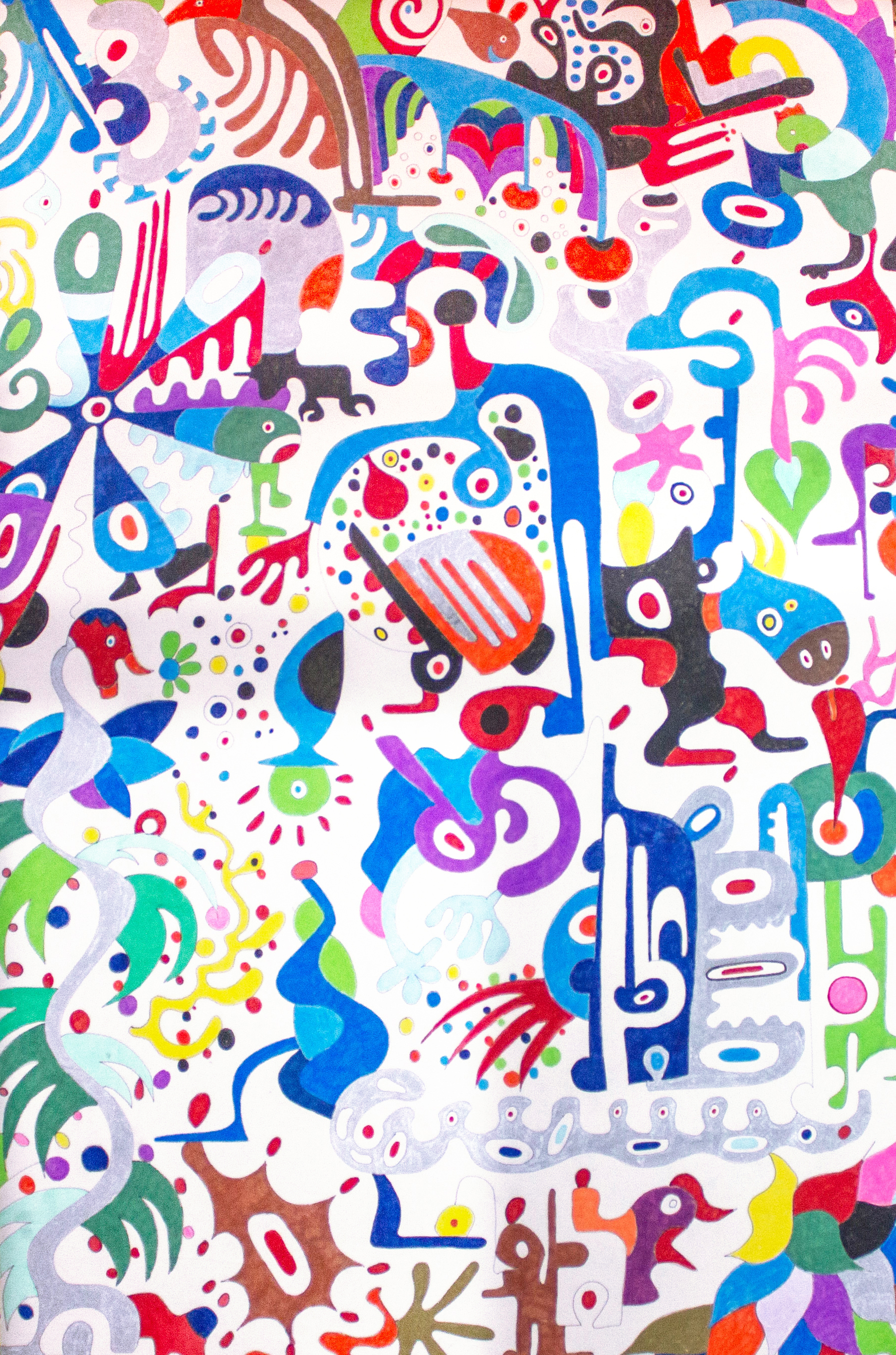 The Theater of Dreams” unfolds like a vibrant stage where colors, forms, and symbols perform in rhythmic harmony. Figures, animals, and abstract shapes intertwine in a kaleidoscope of motion, evoking both playfulness and mystery. The layered composition invites viewers to wander through an imaginative world, where reality and fantasy merge. Nathalie Gribinski’s bold palette and fluid lines turn the canvas into a dreamlike spectacle, celebrating creativity as a living theater.