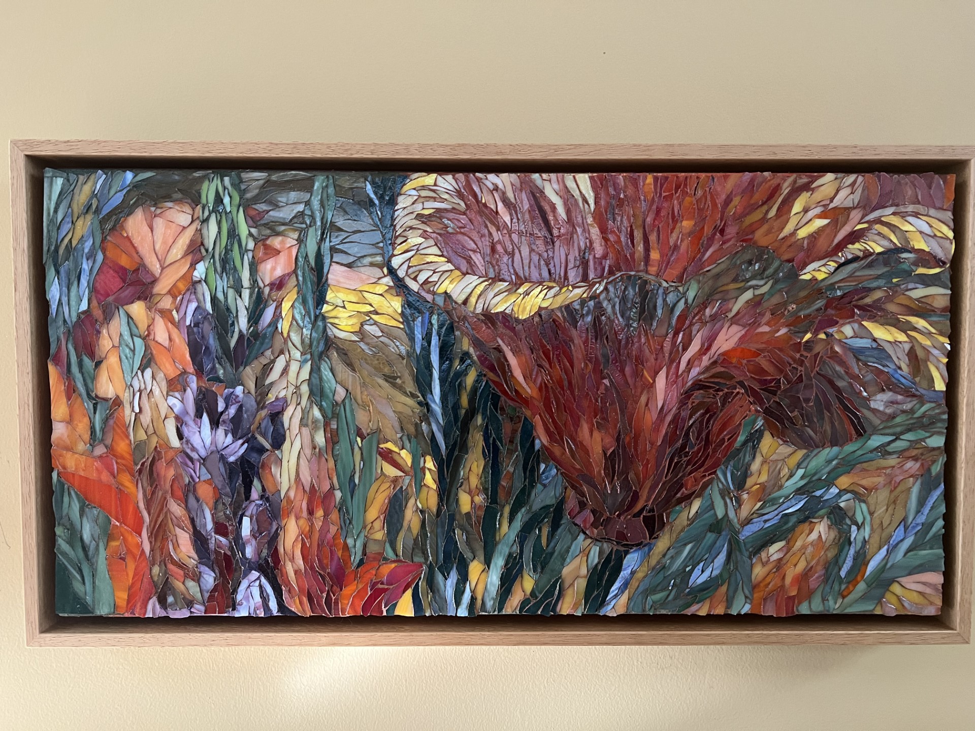 2ftx3ft This is all done in cut stained glass. I work in minute detail and cut every little piece by hand. I create an impressionist painting with stained glass mosiacs