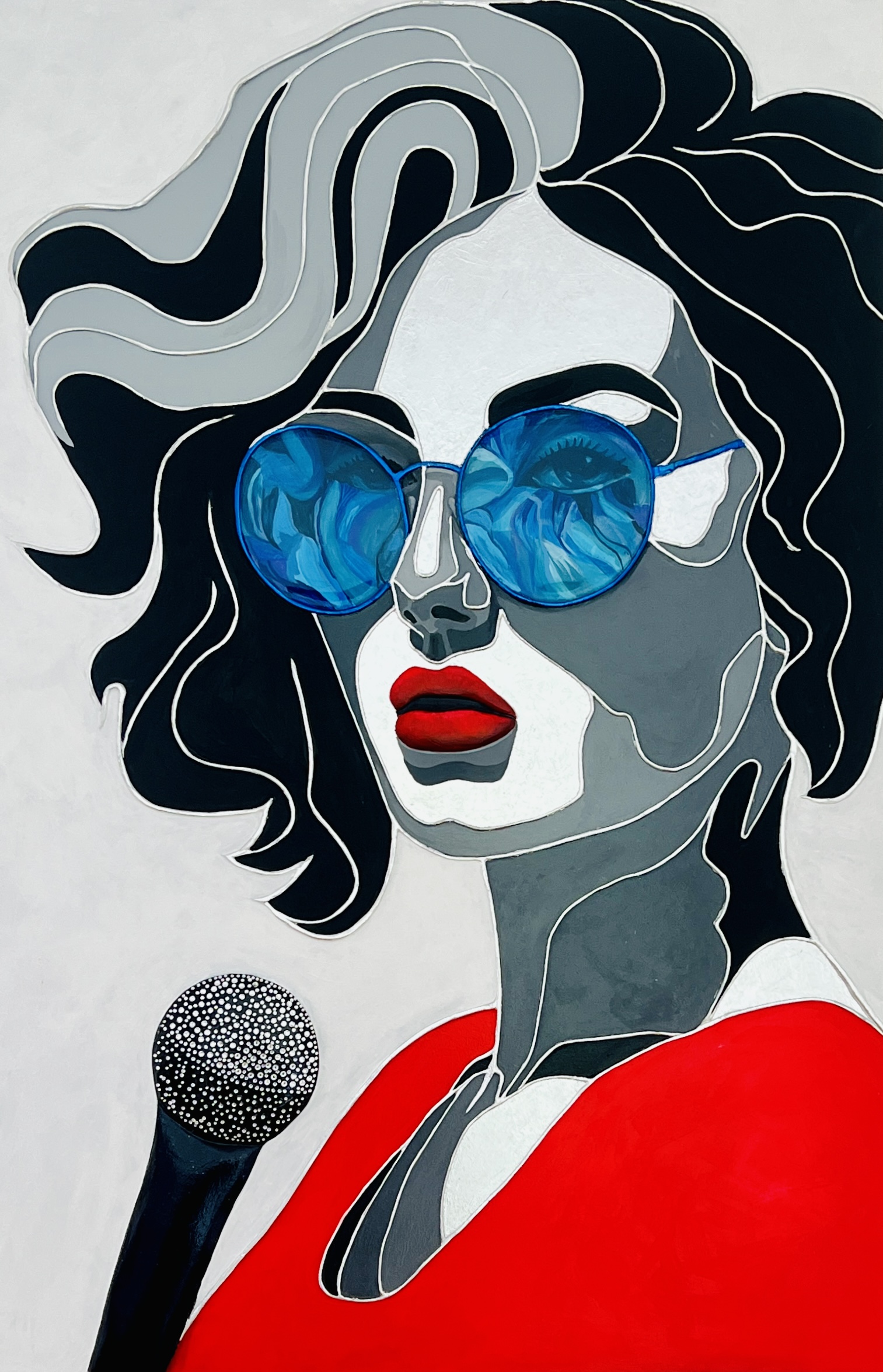 Bold, radiant, and unapologetically present, Lady in Red captures the charisma of a woman whose voice is both seen and felt. With striking contrasts, vibrant hues, and sculptural details, the work embodies confidence, individuality, and the timeless allure of artistic self-expression.