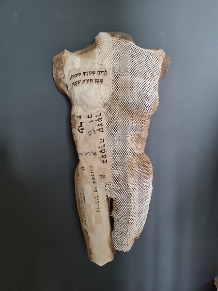 Ahuva Muzikansky, Mesh sculpture for hanging on the wall, height approximately 100 cm, can be arranged on a wooden base